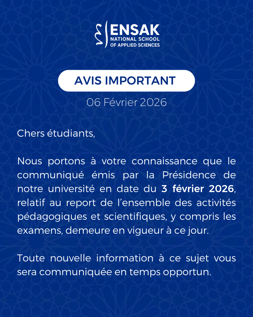 École Nationale des Sciences Appliquées © 2025 Université Ibn Tofail. All Rights Reserved