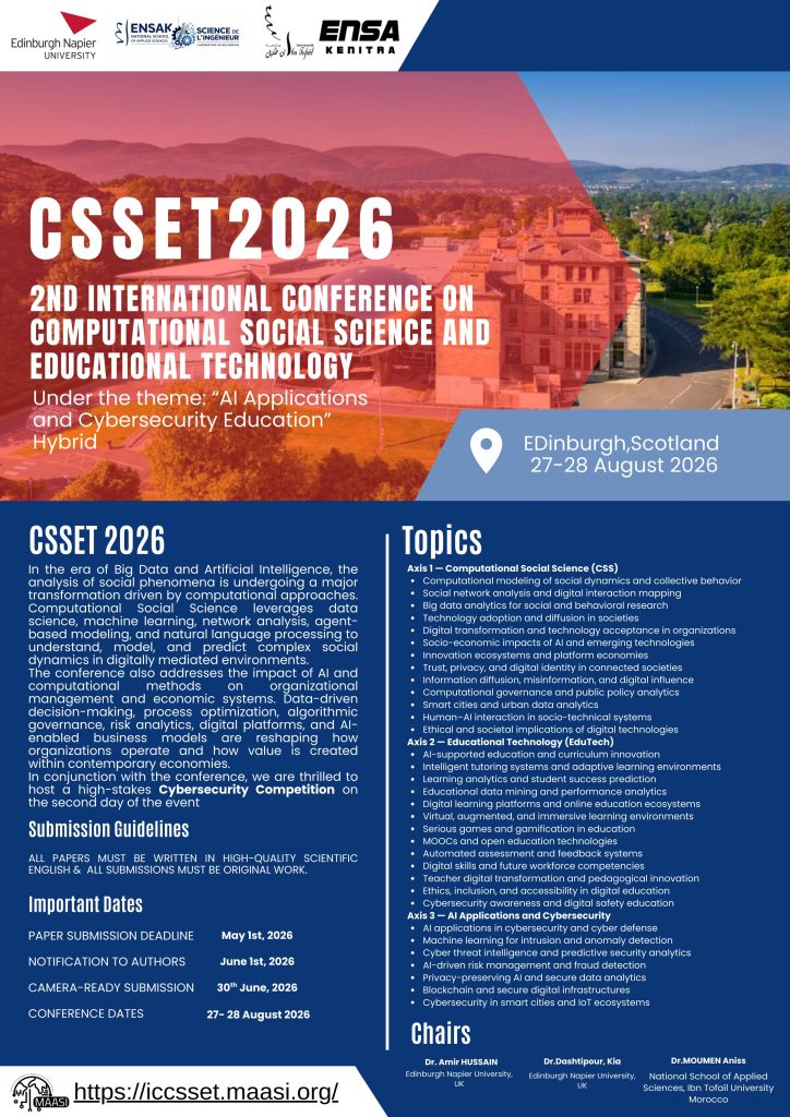 📅 August 27–28, 2026 |📍 Edinburgh Napier University, Edinburgh, UK